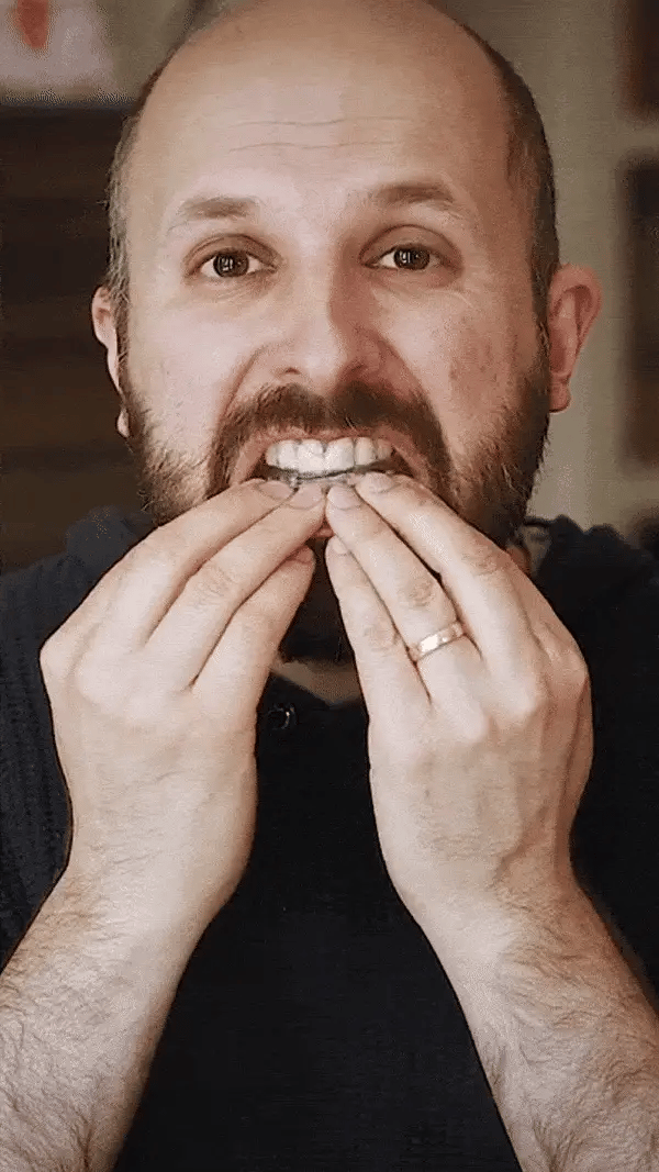 This simple mouthpiece gently adjusts your jaw while you sleep to keep your airway open and stop the snore at its source.